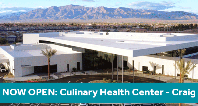 We hope you’ve been having an amazing, healthy year. We have been busy opening your latest Culinary Health Center – Craig, in North Las Vegas! We’re so excited to offer a 3rd healthcare home for you and your loved ones! Whether you’re a 1st-time patient or looking to switch from another health center, we’re ready to help you make your first appointment. Give us a call at 702-790-8000!