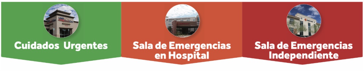 | Para problemas de salud que necesitan ser tratados enseguida pero NO presentan un peligro para su vida o el riesgo de perder una extremidad. | Para emergencias potencialmente mortales, tales como infartos, derrames cerebrales o cortes importantes que requieran cirugía. | Una Sala de Emergencias Independiente (ER) es una Sala de Emergencias que no está conectada a un hospital. El problema es que se parece a un centro de Cuidados Urgentes y usted podría ir allí por error. |
